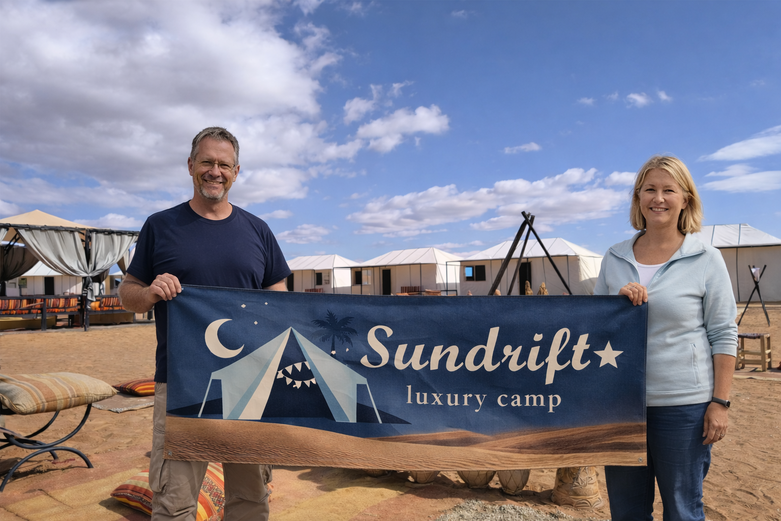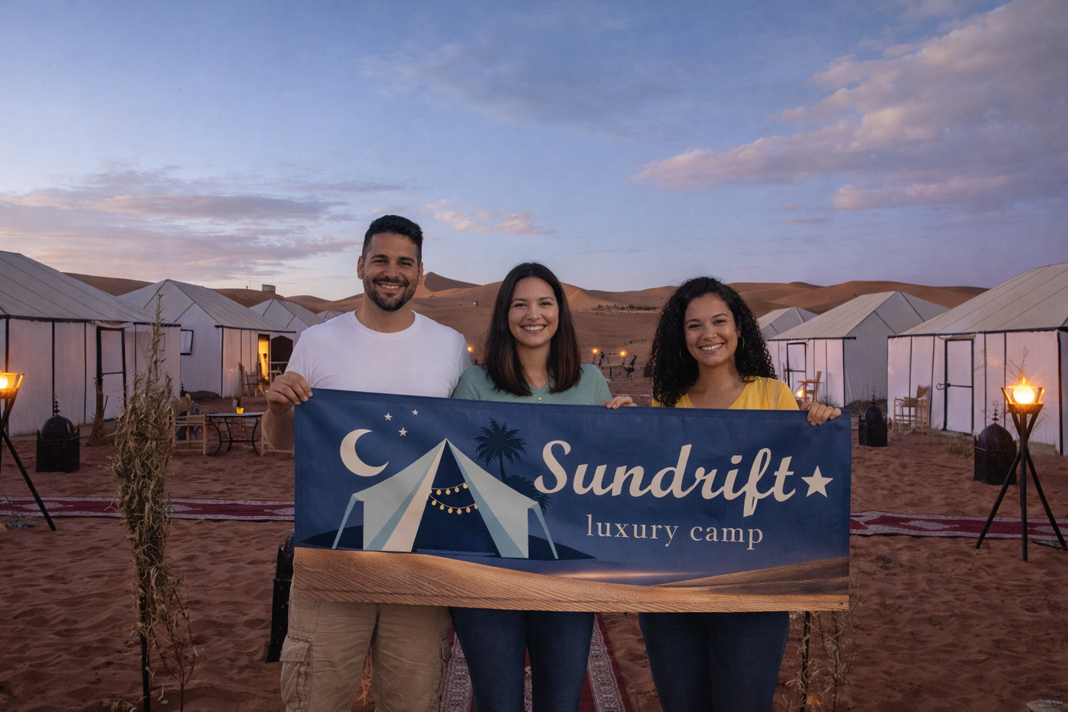 Sundrift Luxury Camp was an absolute dream! The moment we arrived, we were transported to a world of pure luxury and tranquility. Our tent was beautifully decorated and incredibly comfortable, with the added bonus of a hot shower! The staff were incredibly friendly and went above and beyond to ensure our stay was perfect. The food was delicious, especially the Tajine, and the bonfire under the starlit sky was magical. A truly unforgettable experience!